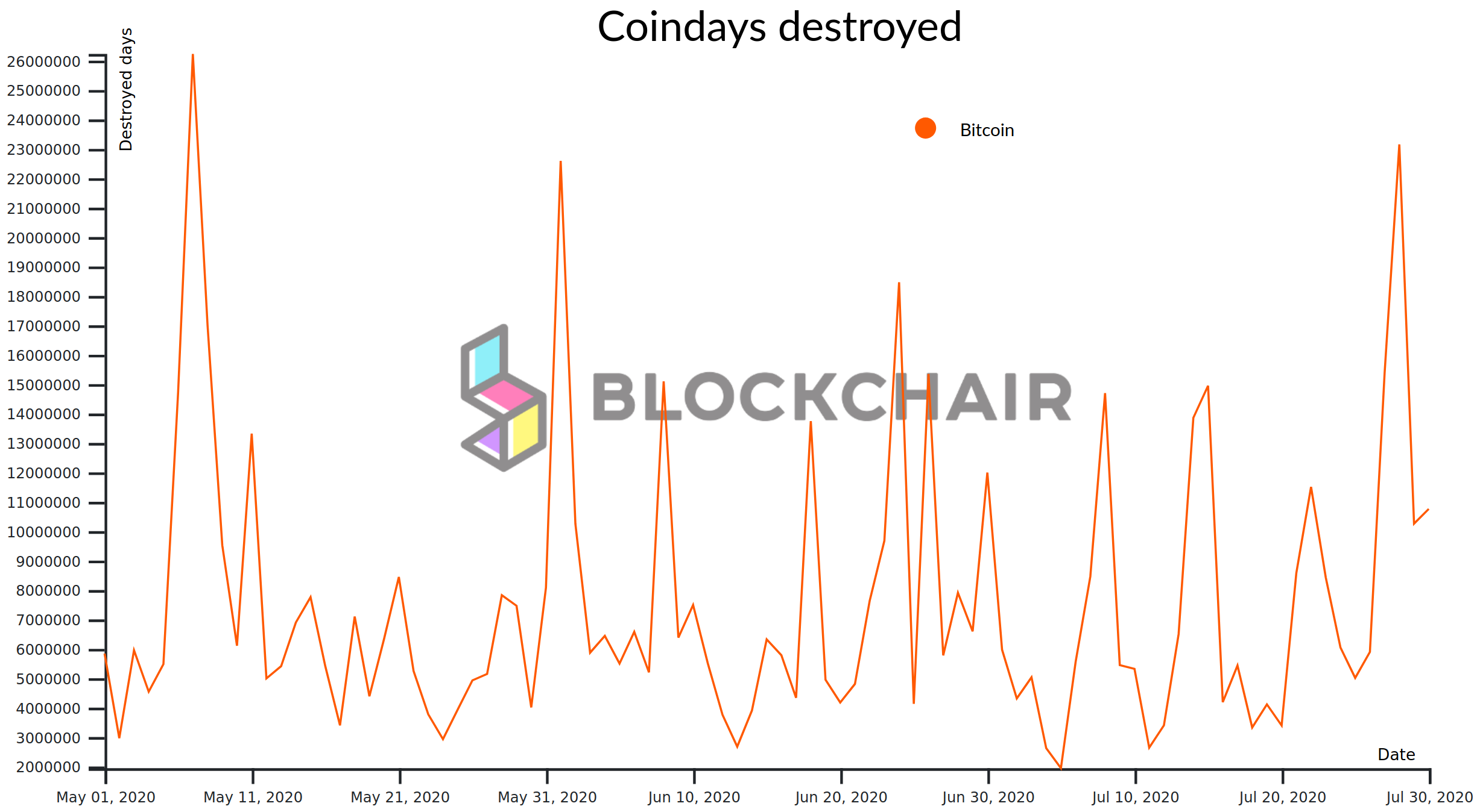 Coin Days Destroyed (CDD) is a measure of economic activity which gives more weight to coins which haven't been spent for a long time. It is considered an important alternative to looking at total transaction volumes, which may not accurately represent economic activity.