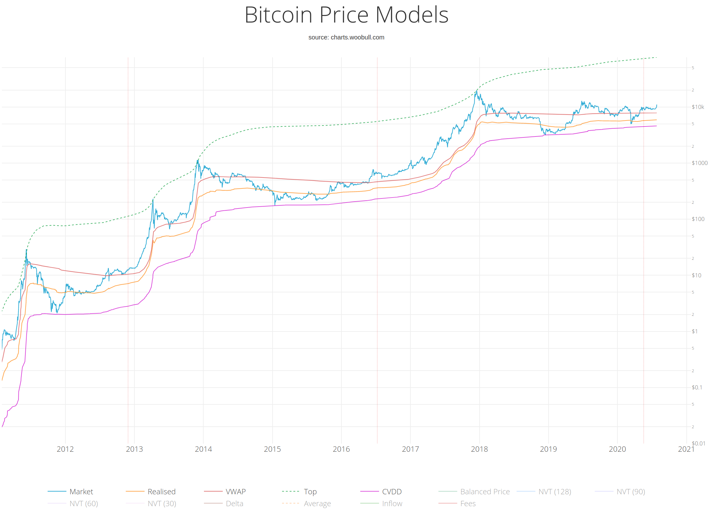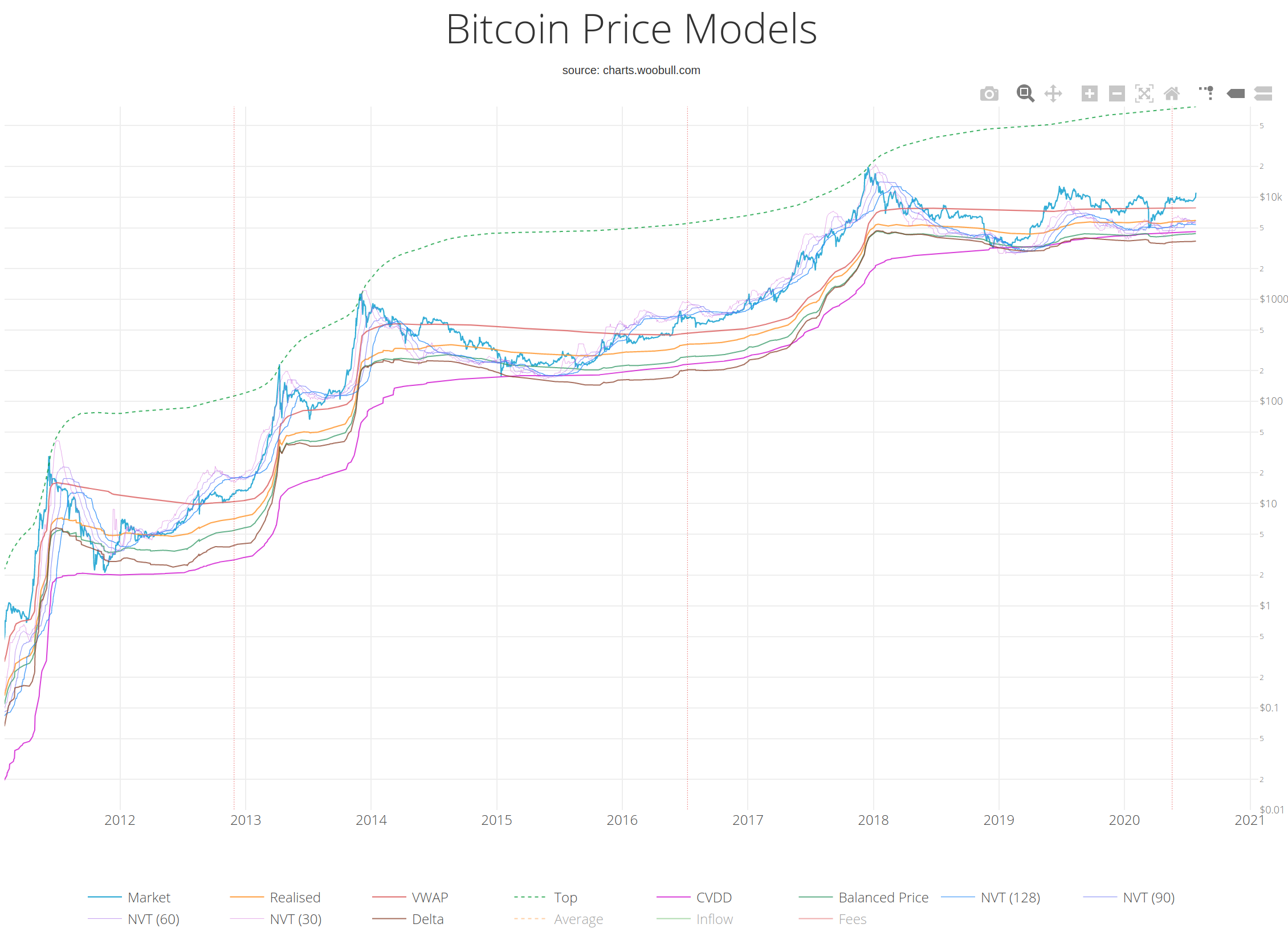 Let's have a glance at Willy Woo's Bitcoin Price Models on Charts.Woobull.com/bitcoin-price-models.