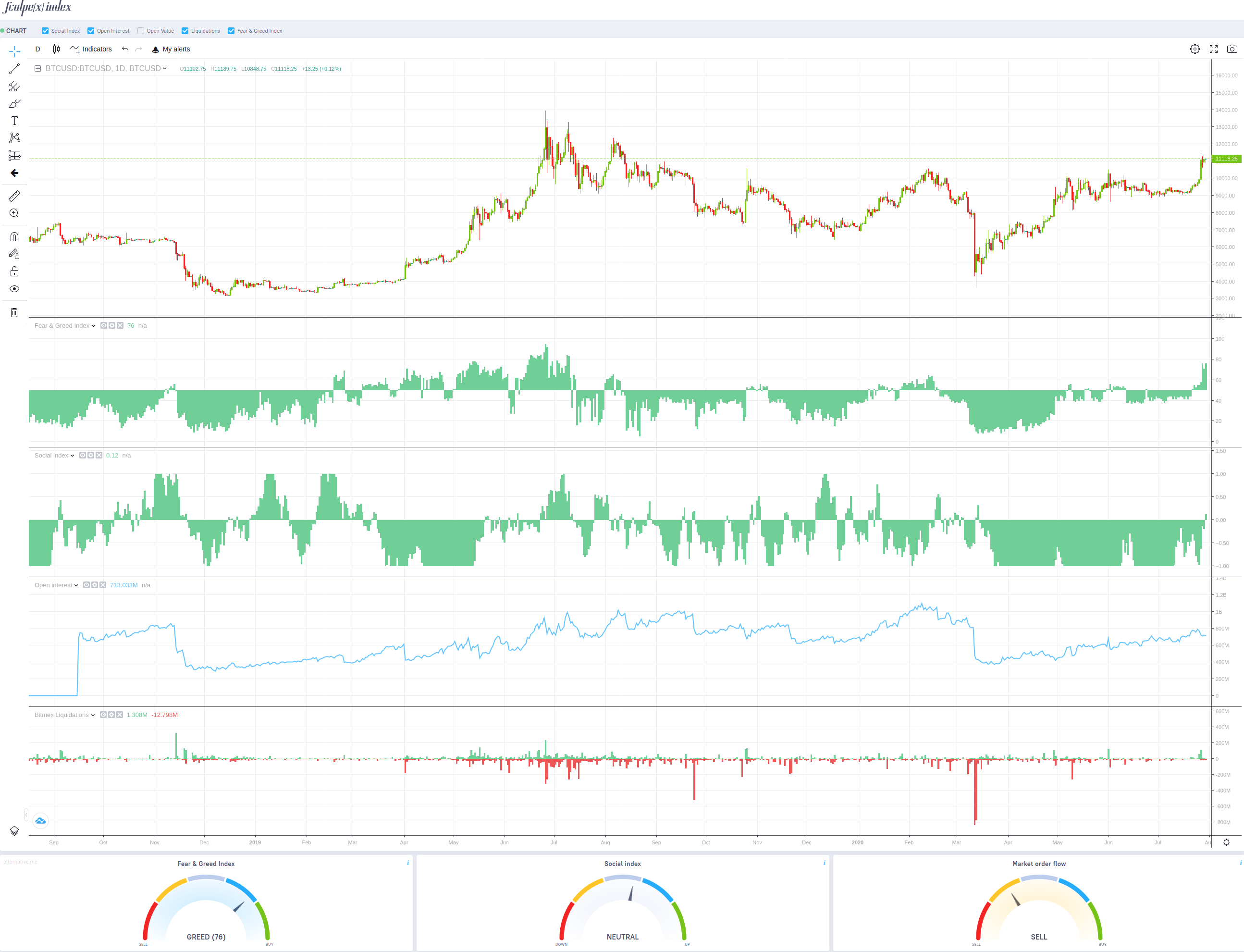The crypto market behaviour is very emotional. People tend to get greedy when the market is rising which results in FOMO (fear of missing out). Also, people often sell their coins in irrational reaction of seeing red numbers. With our Fear and Greed Index, we try to save you from your own emotional overreations. There are two simple assumptions: