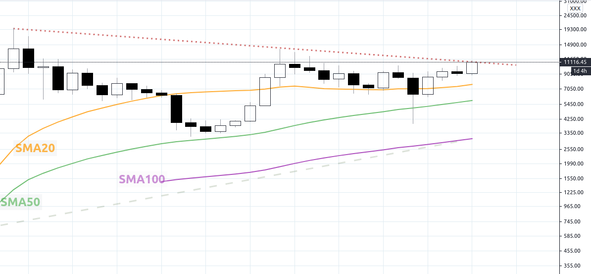 Zoomed in: a monthly close above roughly USD 10'950 could or rather would be interpreted as a bullish sign – presumably in the context of